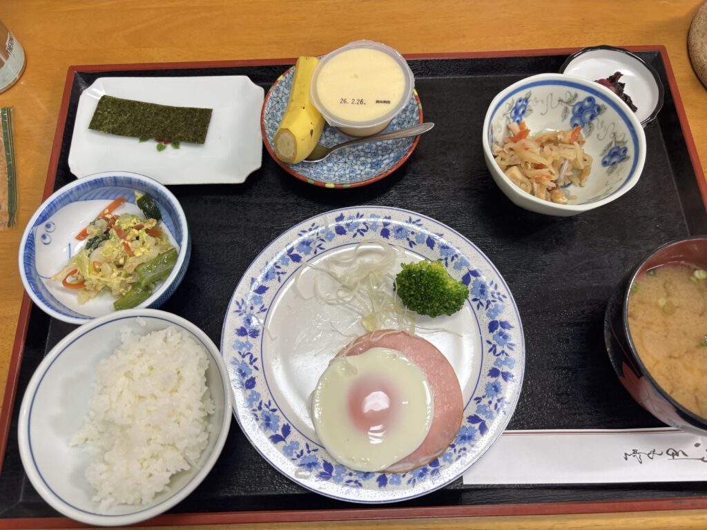朝、旅館吉野のおいしい朝食で腹ごしらえをし、女将さんから昼食用の「おにぎり弁当」を受け取る。これが今日の命綱だ。