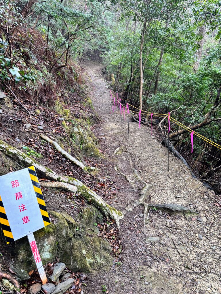 「水大師」の先で、トレイルが少し崩れている箇所があった。昨日宿で「路肩が崩れて狭くなっているから注意するように」と説明を受けていた場所だ。慎重に通過する。