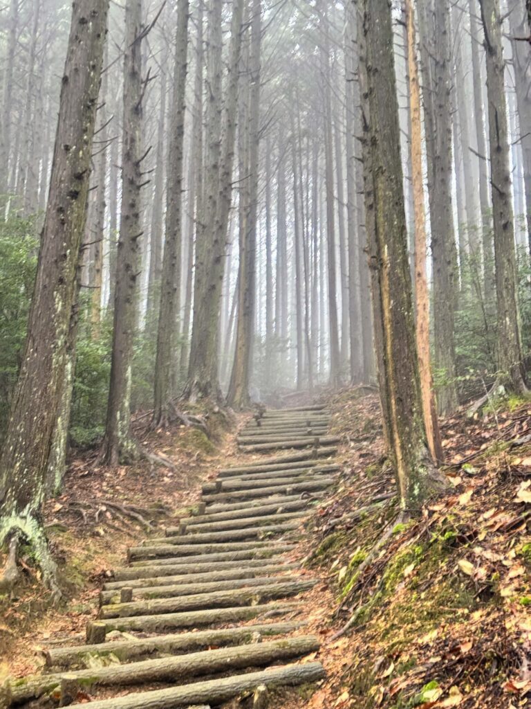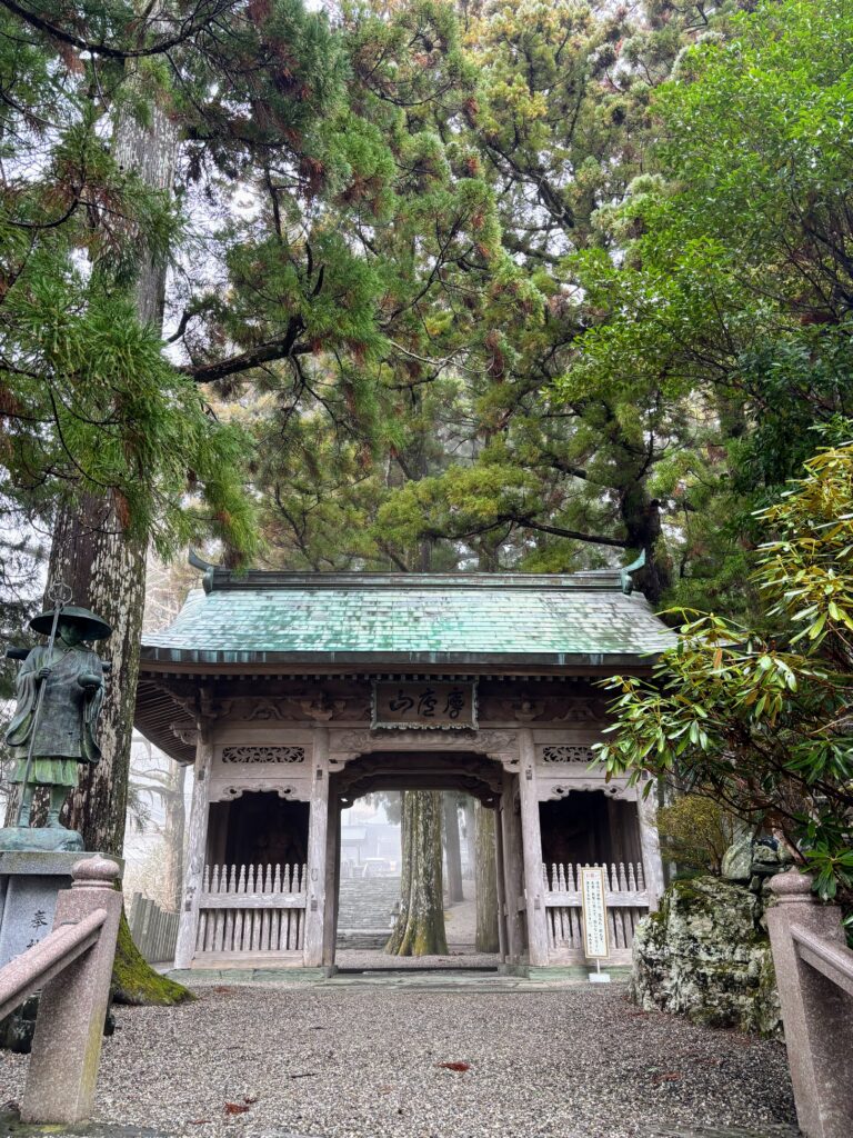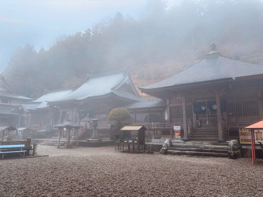 標高約700m。「四国の高野山」とも称されるこの場所は、樹齢数百年を超える巨大な杉並木に囲まれ、ちょうど霧の中に包まれていた。下界とは隔絶された、神聖な空気が漂っている。