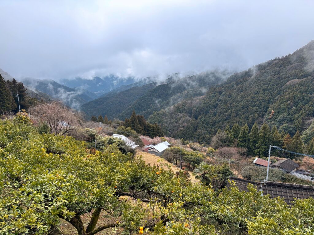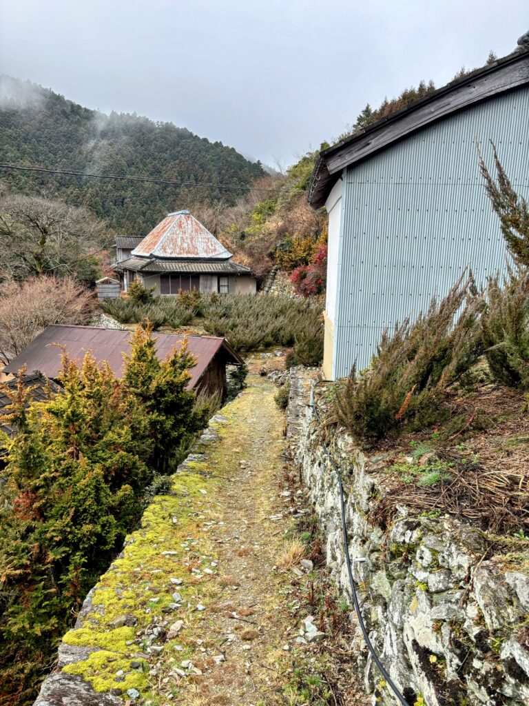 一本杉庵の先で、山肌に張り付くような集落を発見した。「天空の集落」マニアにはたまらない光景だ。