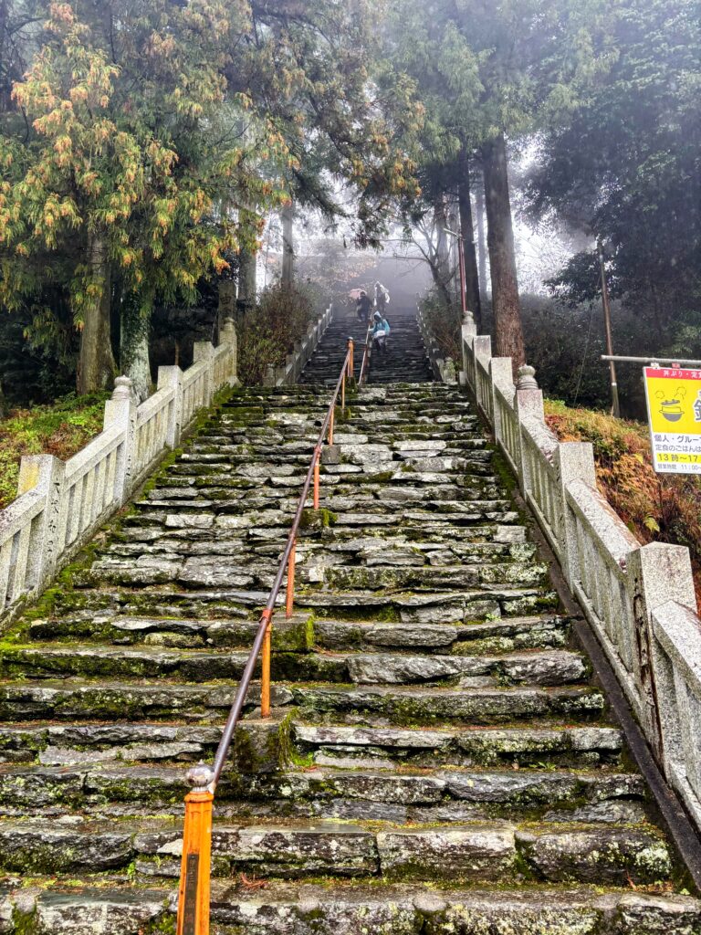 やがて平坦な道から山道へと入り、三角寺へ向けた本格的な登りが始まる。コンクリートの急坂が続き、息は切れるが、平地とは違う筋肉を使うため、筋肉が逆にほぐれていくような感覚があった。