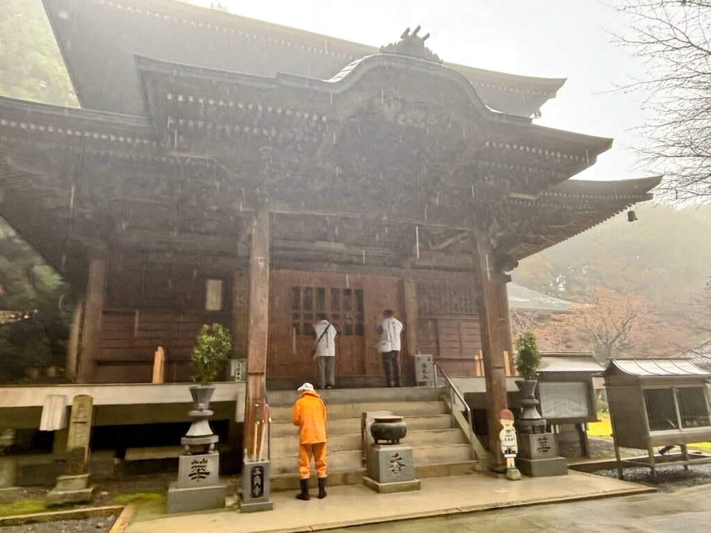 最後は未舗装の山道へと入る。雨だったが足元が滑るような感じはなかった。鳥の鳴き声だけが響き渡る、雨の日ならではの幻想的な山道を一歩一歩踏みしめていく。