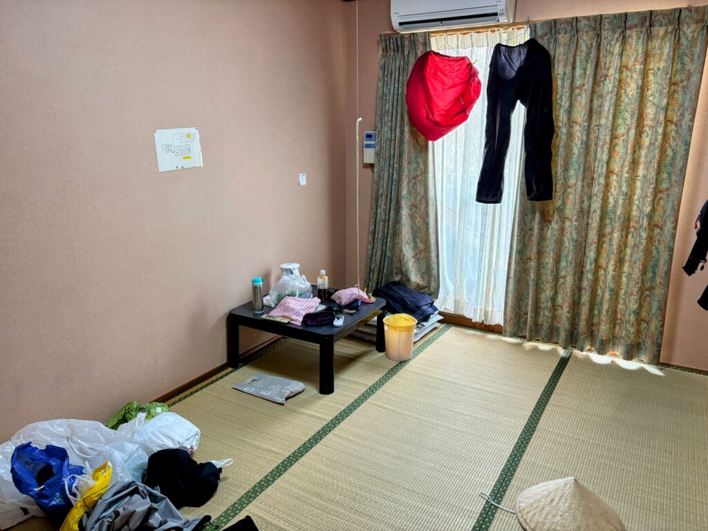 案内されたお部屋は別棟で、我々世代にとってはどこか懐かしい、まさに「学生アパート」のような造りだった。今日は7人ものお遍路さんが泊まっていて賑わっており、大浴場も順番待ちの状態だったのだが、自分の部屋にはユニットバスが付いていたので非常に助かった。