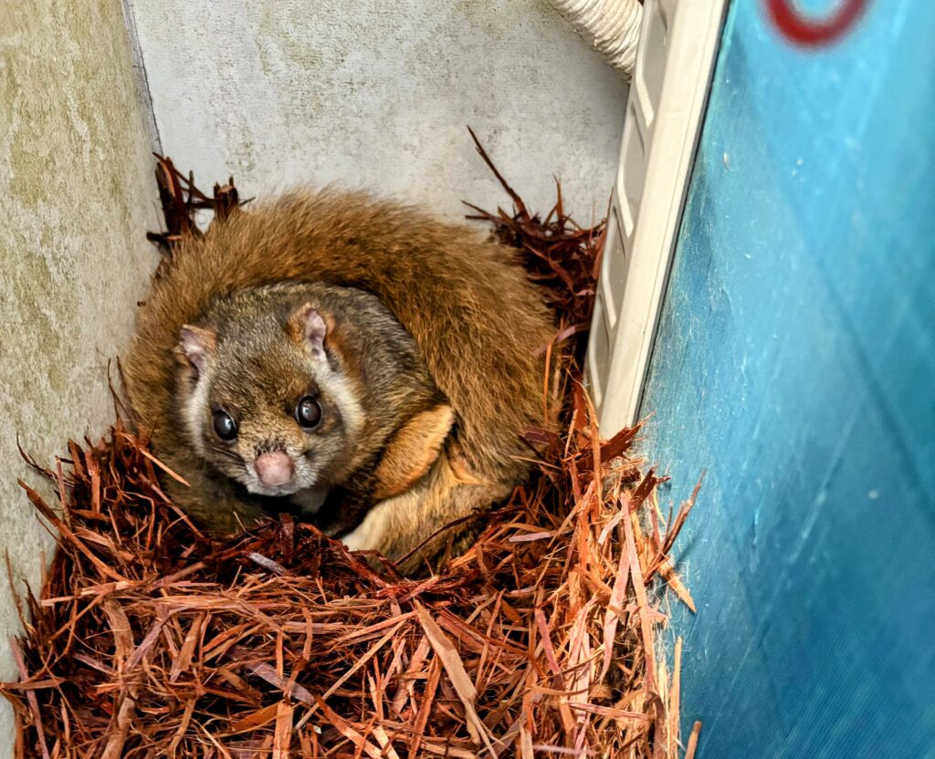 そして、ここで驚きの出来事が。なんと、室外機の裏に「ムササビの赤ちゃん」がいたのだ!驚かせてごめんなさいと心の中で謝りつつ、そっと静かに写真を撮らせてもらった。ムササビが身近にいるほど、ここは自然が豊かな場所なのだと改めて実感する。
