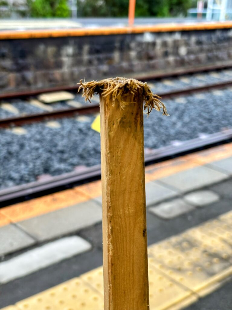 杖を見ると、アスファルトや山道をつき続けた先がすり減り、出発した時よりも10cmくらい短くなっていた。その短さが、これまでの過酷な道のりを無言で物語っていた。