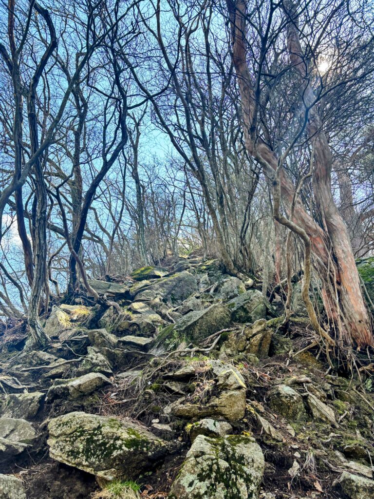 お遍路交流サロンを出発すると、いよいよ大窪寺までの道のりに立ちはだかる標高約770mの「女体山」の登りが始まる。四国遍路の締めくくりにふさわしい、最後の「遍路転がし」とも言える険しい山道だ。