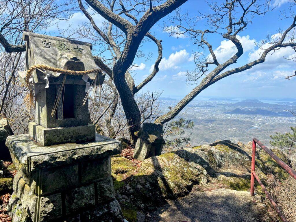 そしてついに、女体山の山頂に到着!雨の中の登山を楽しむつもりだったが、眼下にはまさかの晴れ渡った絶景が広がっていた。最後の最後に、四国の神様が素晴らしいご褒美をくれたのだ。