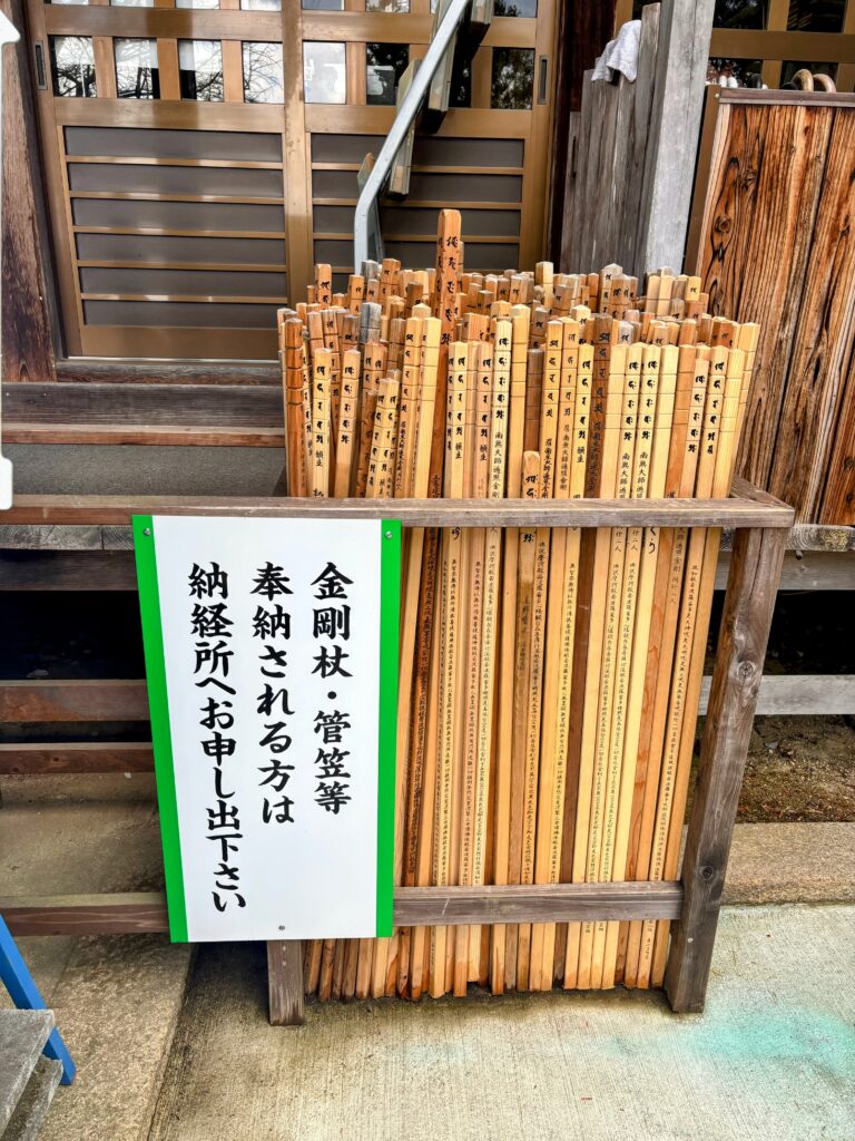 大窪寺では、結願の証としてこれまで使ってきた金剛杖や菅笠を奉納していく人も多いが、自分は奉納しないことにした。36日間、一緒に四国を歩き抜いた大切な相棒だからだ。
