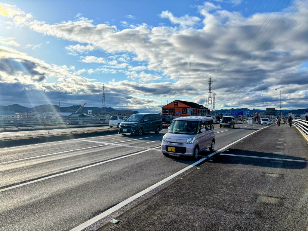 市街地から郊外へと景色が変わり、小松島市へ。