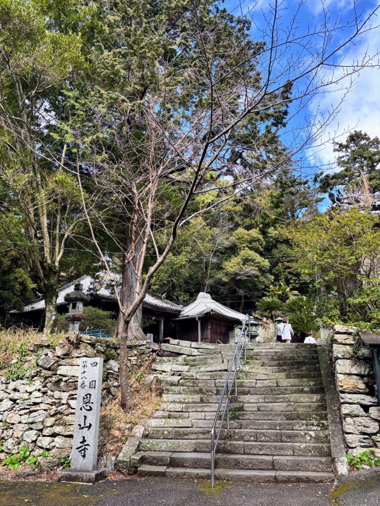 約10km歩いたところで、第18番 恩山寺の入り口に到着した。ここは少し小高い山の上にあり、久しぶりに木々に囲まれた静かな参道を登っていく。