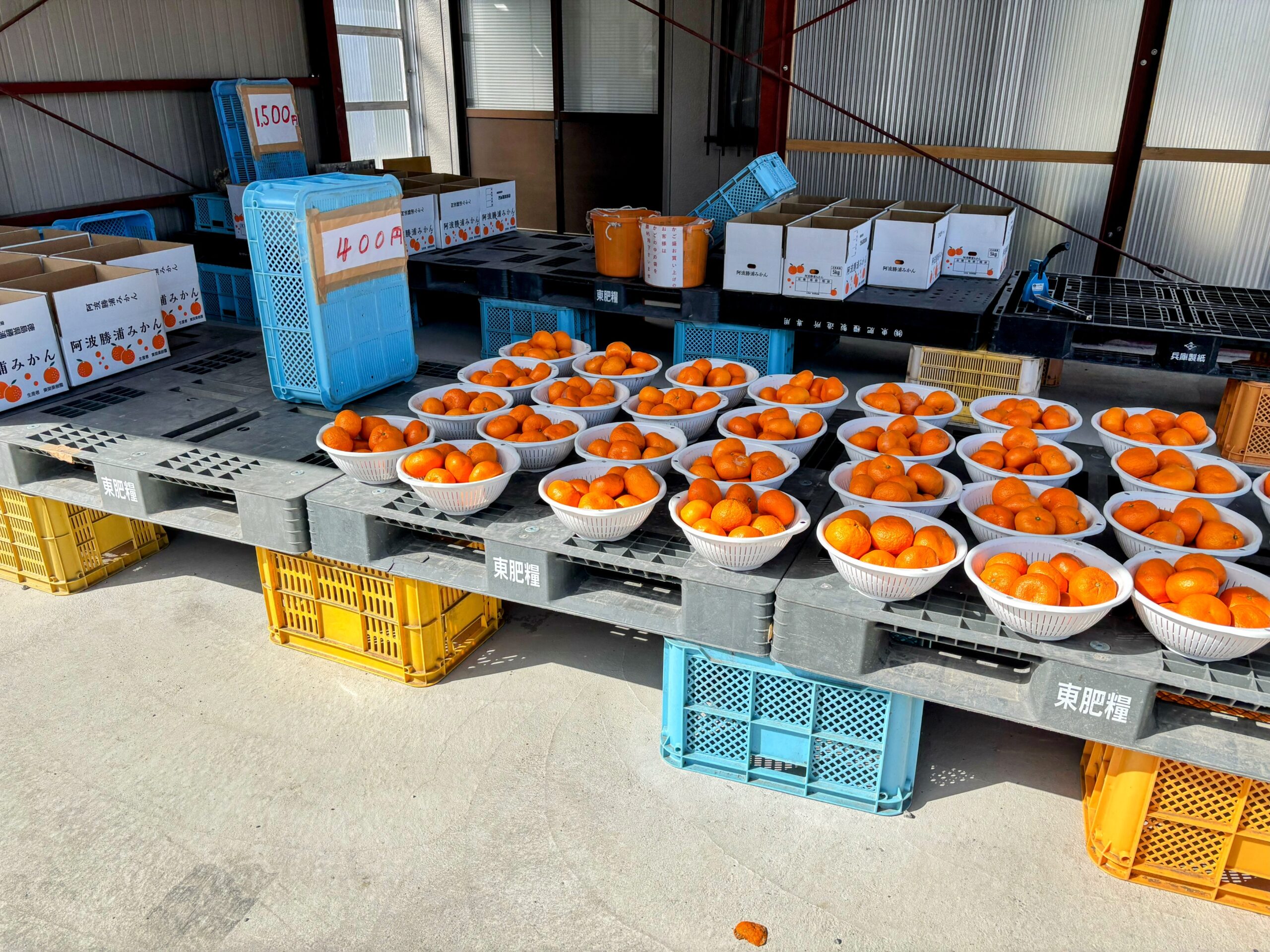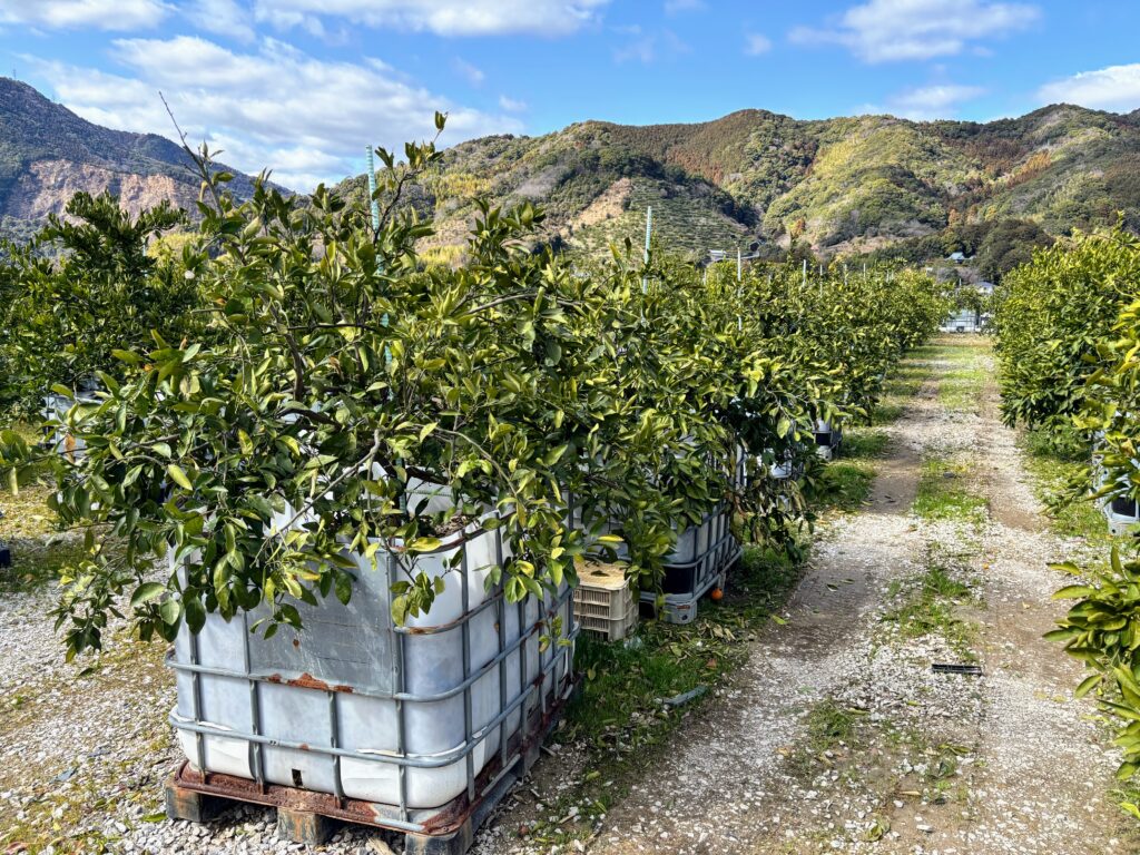 道中、みかんを売っている場所があった。コンテナ栽培というのが特徴らしい。試食させてもらったら甘くて美味しい。元々は肥料を製造している会社で、外国から原料のリンを輸入する時に使ったコンテナを再利用しているとのことだった。