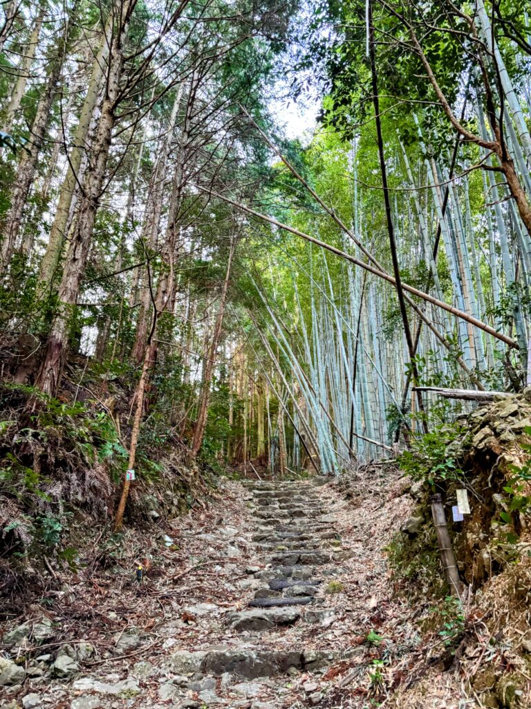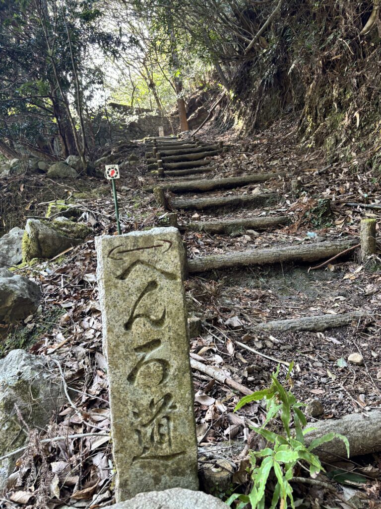 この鶴林寺へ続く「鶴林寺道」には、約650年前の南北朝時代に建てられた花崗岩製の丁石が点在している。今回は南北朝のものは見つからず、江戸時代後期くらいのものを見かけた。水呑大師から境内まで続くこの古道は、後半になると趣のある石畳に変わり、通夜堂の跡なども見られる歴史深い道だ。さらにその先の「太龍寺道」も、急勾配の階段や舟形の丁石が残り、昔の遍路の面影を色濃く残している。