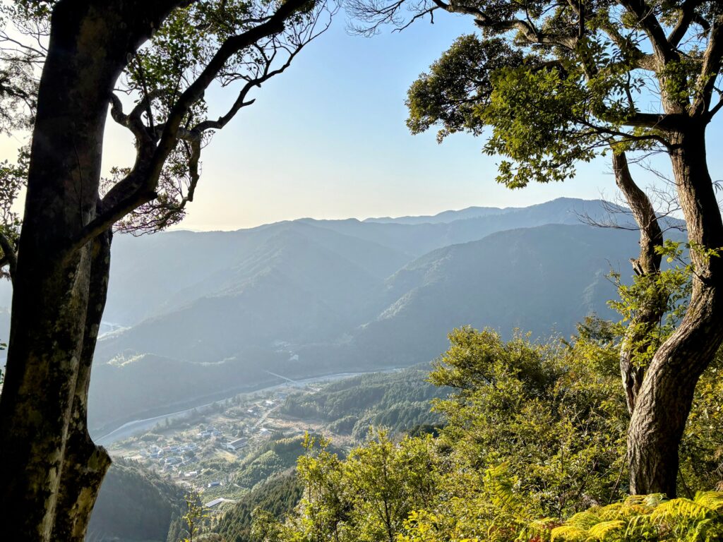 途中で見晴らしの良い場所に出た。これから向かう21番太龍寺の山が見える。あそこへ行くには、一度川のところまで下って、また同じだけ登り返さなければならないという最高のご褒美つきだ。うれしいな(笑)。