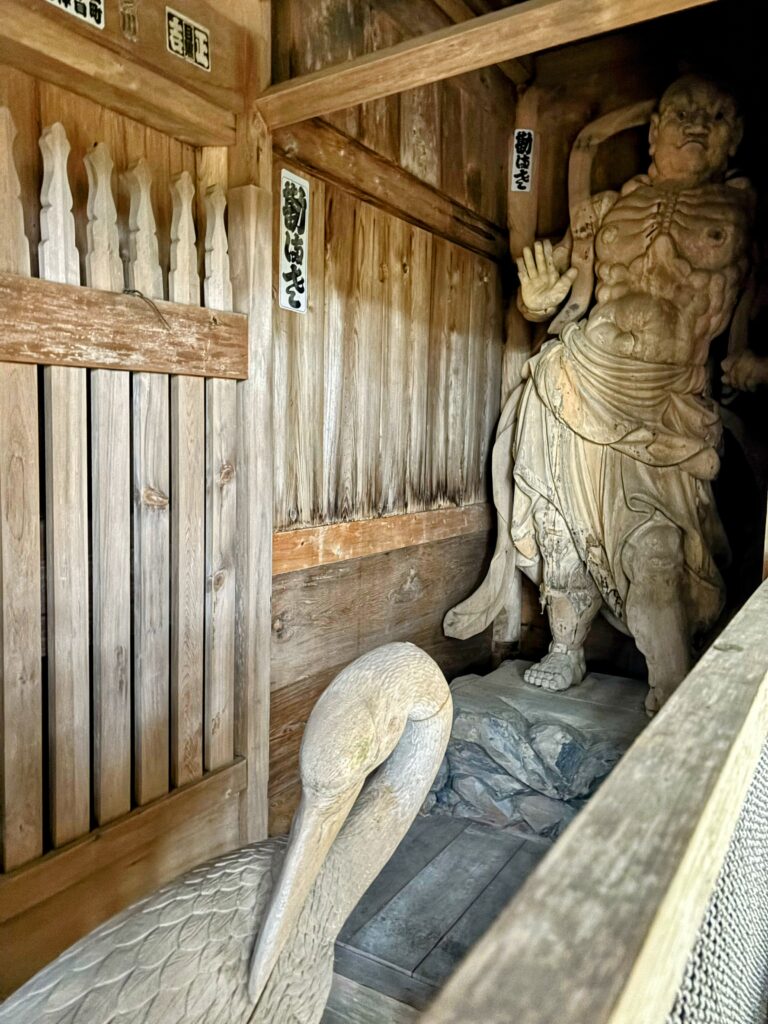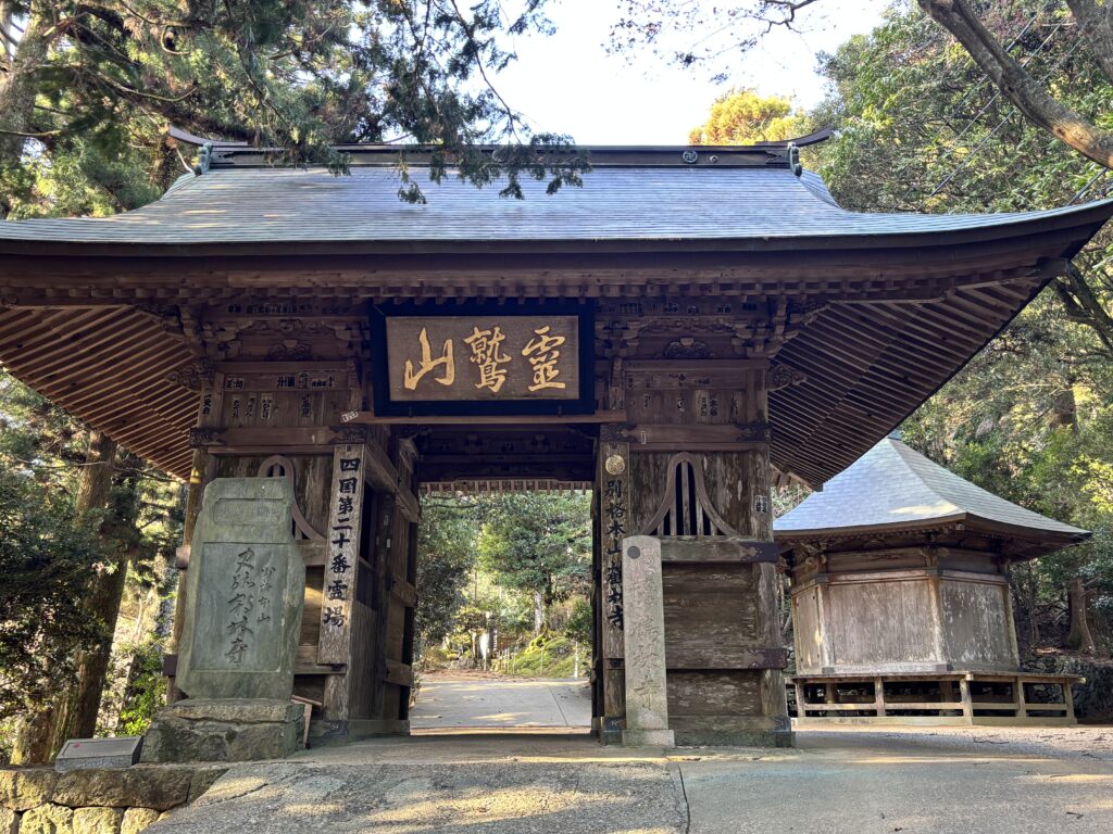 静寂な杉林と檜林の中を歩いていると体温が上がり、じんわりと汗をかいてくる。一歩一歩踏みしめながら、最後の約2kmの険しい山道を登りきり、ようやく20番 鶴林寺に到着した。山門では運慶作とも言われる大迫力の仁王像が睨みを利かせ、境内に立つ立派な雌雄の鶴の銅像が出迎えてくれる。最初の難関を越えた達成感を得た。