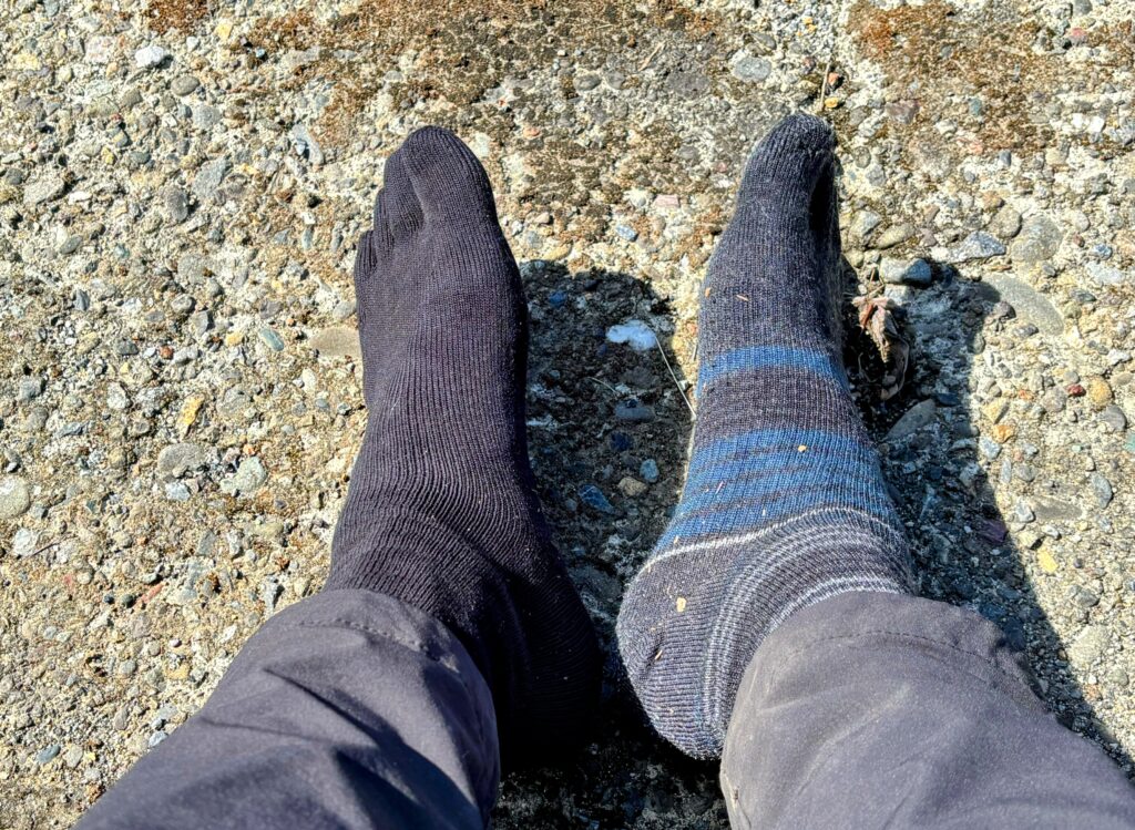 幸いにも、足のマメは回復傾向で痛さも無くなってきた。工夫したのは靴下の履き方だ。左右で合う靴下が違い、右は中厚手、左は薄手というチグハグな組み合わせだが、これが今の自分にはベストマッチ。さながらフィギュアスケートの「りくりゅうペア」のような見事な相性である。