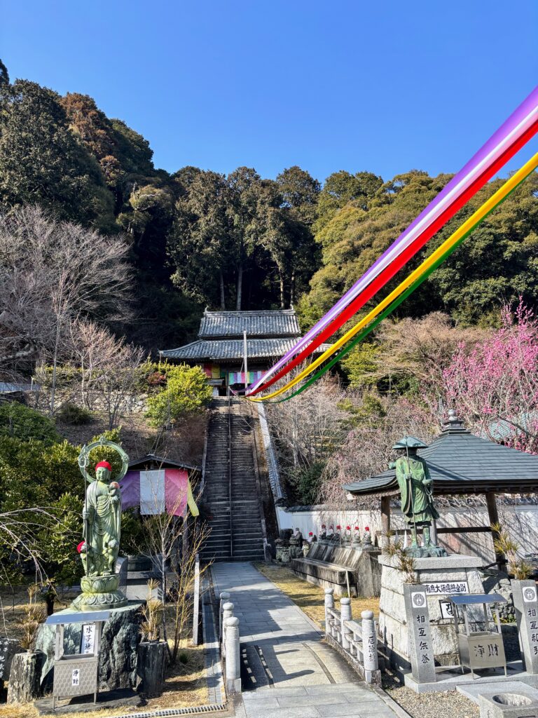 出発し、いよいよ阿波の難所の一つ、第20番 鶴林寺へ向かう。まずは登山口まで約3kmを歩き、そこから標高約500mの山頂を目指す過酷な登りに入る。みかん畑を抜ける農道で、少しずつ高度を上げていった。桜が綺麗。日本の春だ。