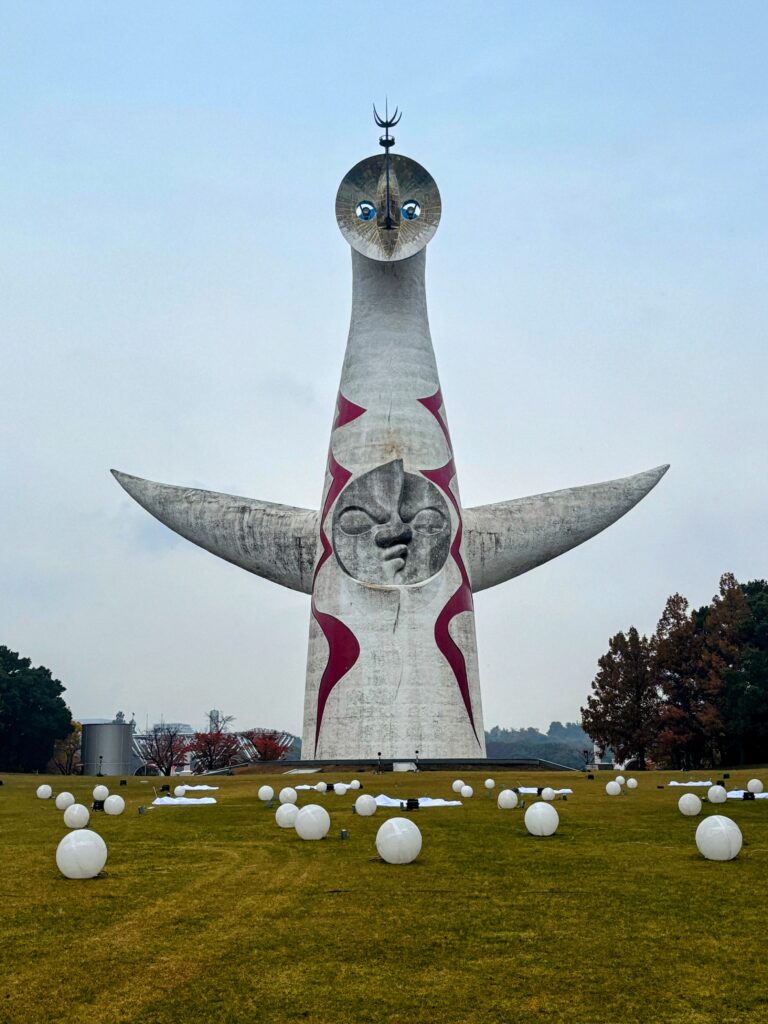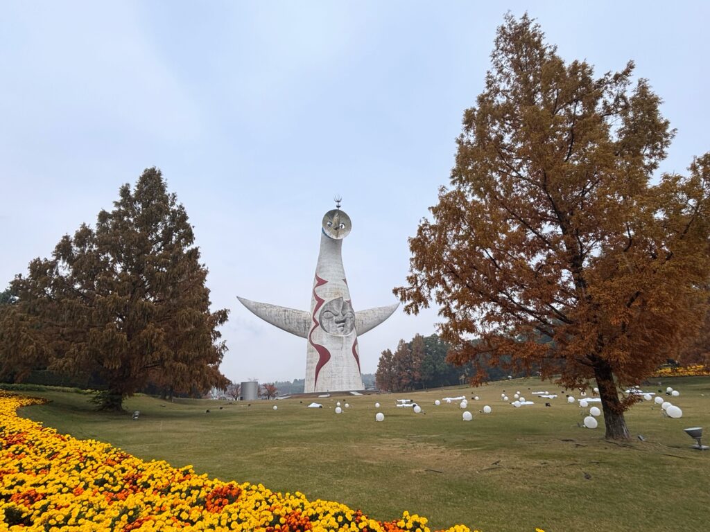 万博公園に入ると、太陽の塔とご対面。小学校1年生の昭和50年頃に来たことがある。周りに屋根があって、太陽の塔の顔が少し上に出ていた記憶があったが、今はない。昭和52〜53年に屋根は撤去されたとのこと。知り合いに聞くと、この姿が普通。屋根は知らないという意見が大半だった。自分がいかに古い人か実感した。