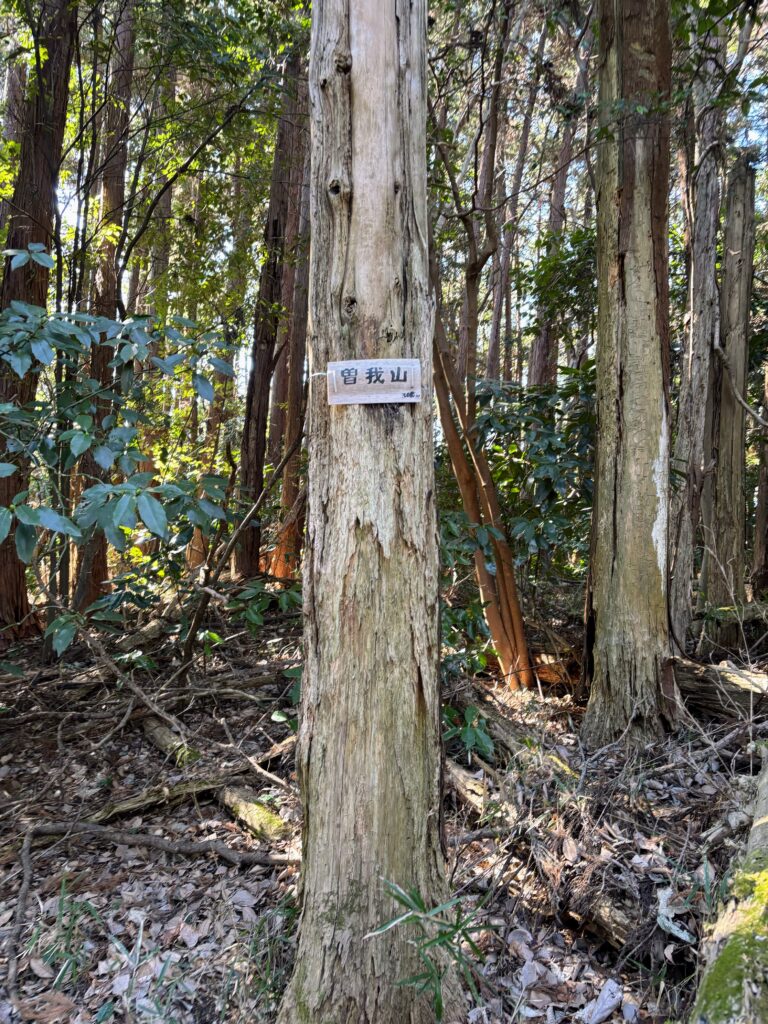 不動山を後にして、そのまま尾根伝いに進み、ほどなくして「曽我山」も通過します。こちらも不動山と同様、曽我山からの眺望はありませんでした 。この辺りは静かな森歩きを楽しむ区間と割り切って、ひたすら森林浴を満喫します。