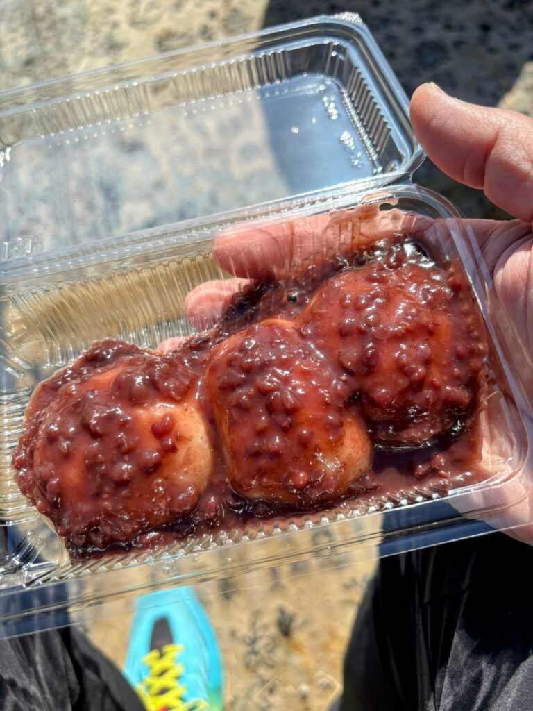 「つき立てだよー」という威勢の良い呼び込みに惹かれて、あんこ大福を購入。これがまた歩いた体に染み渡る美味しさでした。