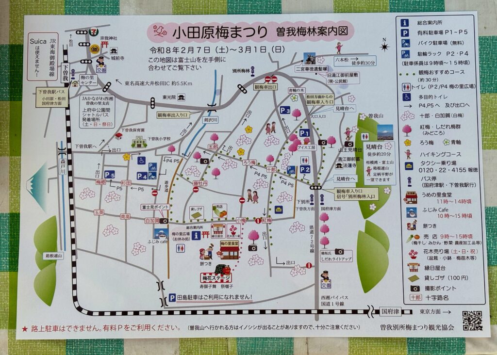 山を下りきると、いよいよ全国的にも有名な「曽我梅林」のエリアへと到着します。さすがは名所、たくさんの観光客で賑わっていました。