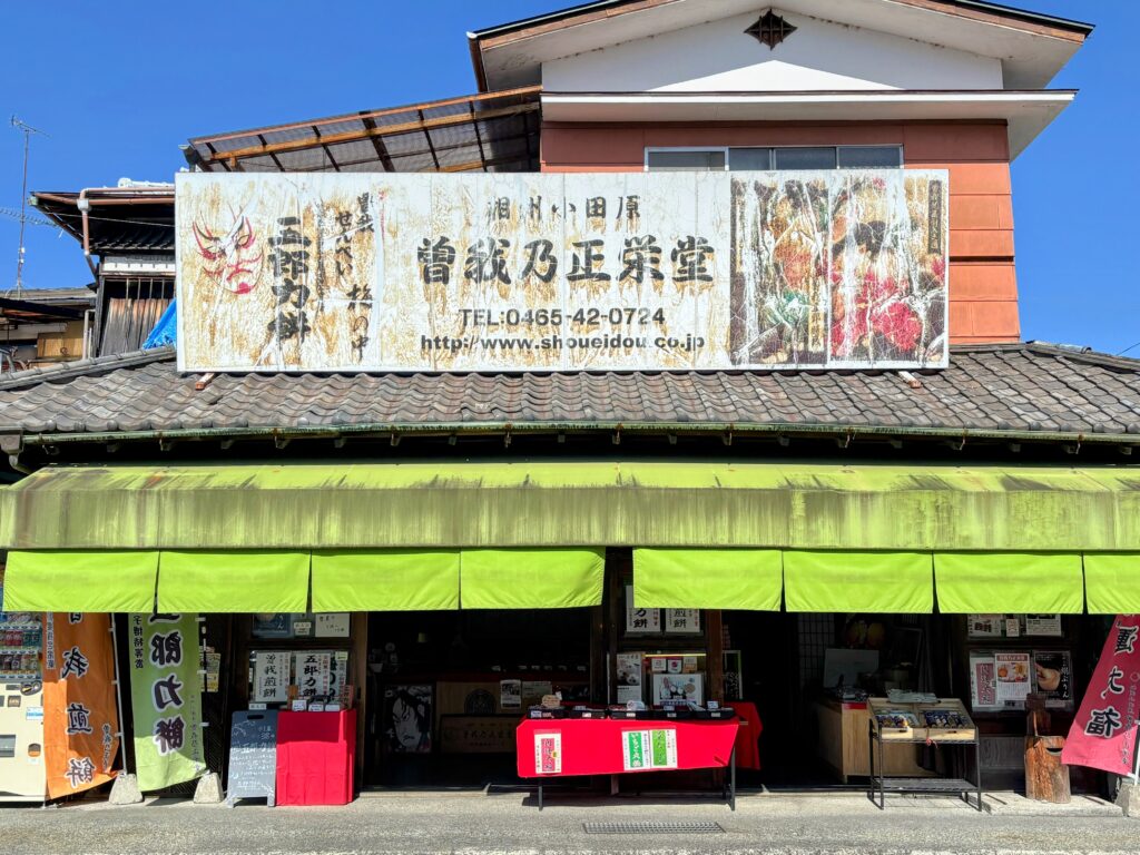 駅前に到着し、最後に立ち寄ったのは和菓子屋の「曽我乃正栄堂」さん。渋くて趣のある昭和の建物の佇まいがたまりません。完走の自分へのご褒美に、「開運勝餅大福」を購入しました。
