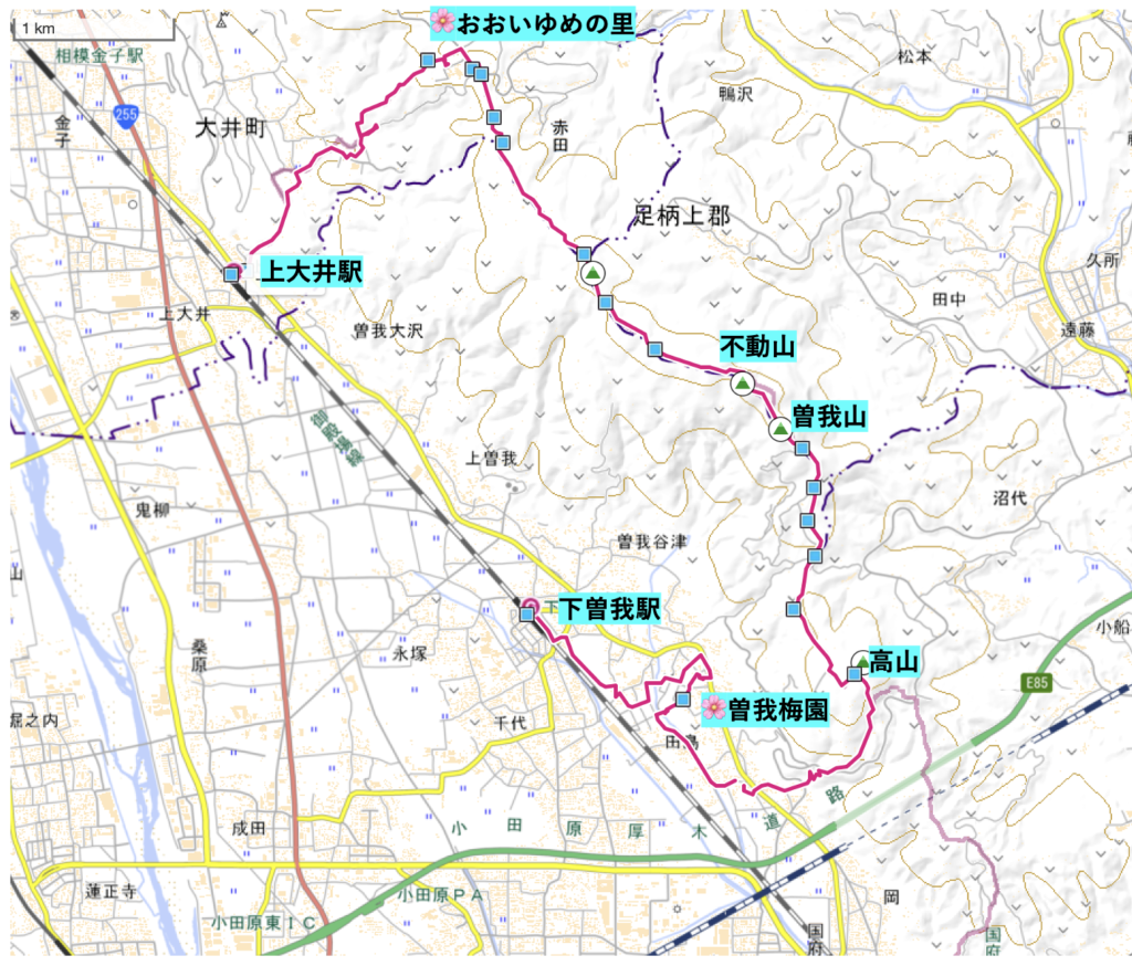 【山行記】上大井駅〜おおいゆめの里〜不動山〜曽我梅林〜下曽我駅