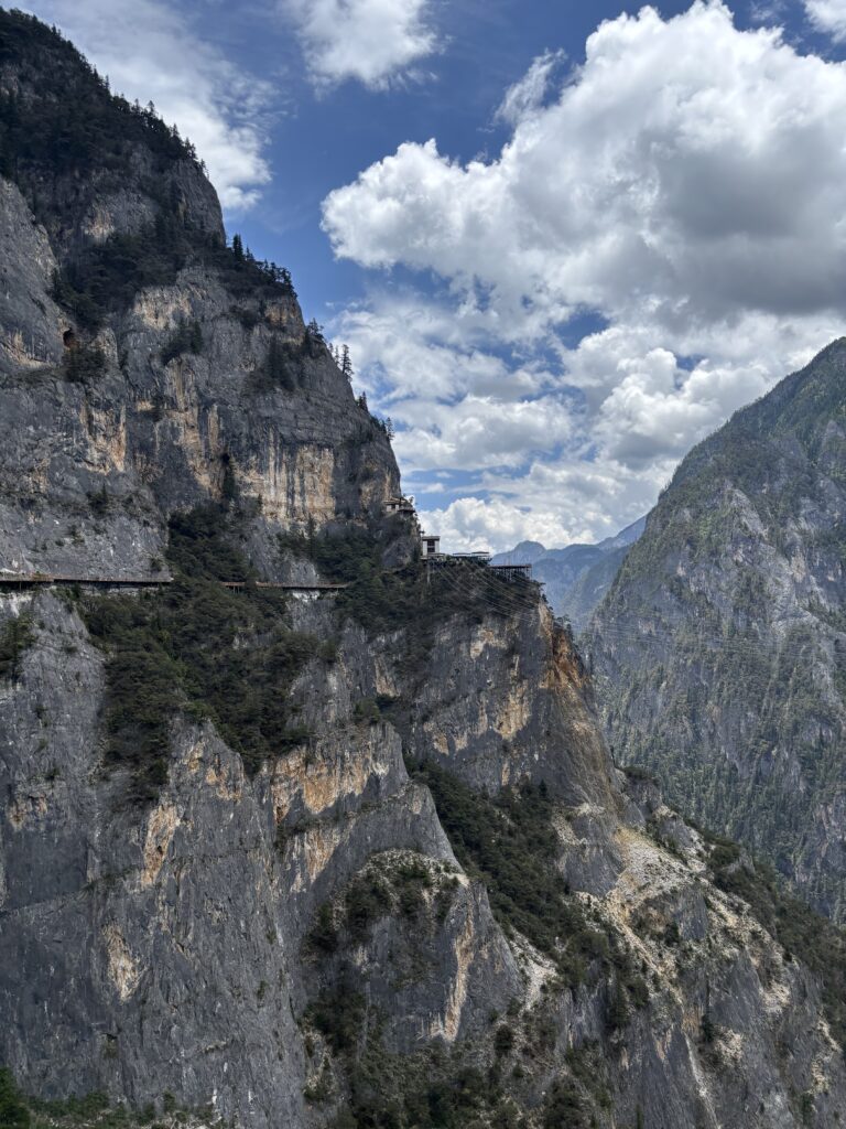 2つ目は、3000mの絶壁をへばり付くように1kmくらい歩く。よくこんな歩道を作ったものだ。下がスケスケのガラス張りの展望台がありる。スライダーをやっている人もいる。絶対無理。