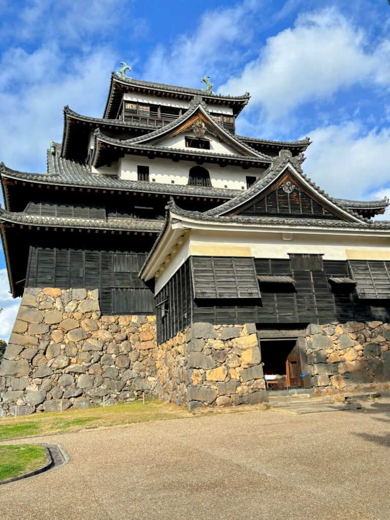 掘尾吉晴が築城した実戦向きに工夫されたお城。籠城戦用の井戸があったり、見えないところに石落としを設置していたりしている。鉄砲や矢を撃つ狭間と呼ばれる窓が敵からわかりにくいようにするために壁を黒く塗っている。