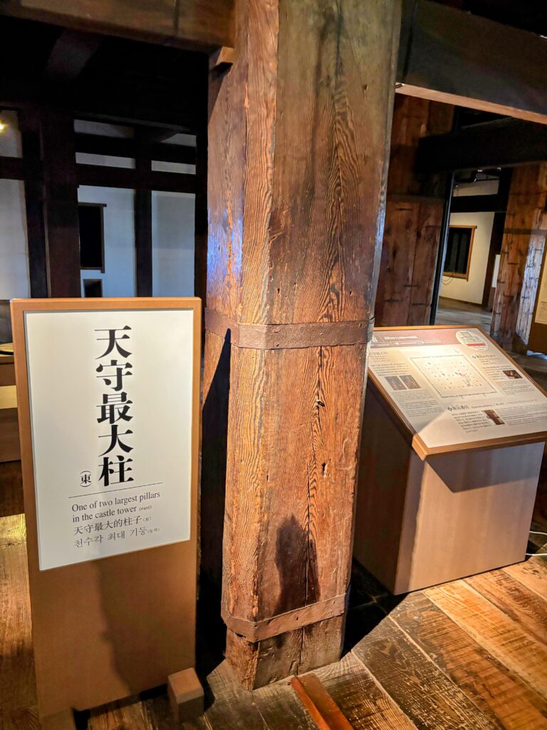 天守閣を支える最大の柱。樹齢何年の杉の木なんだろうか?そして動力のない時代に運ぶ苦労は想像もつかない。