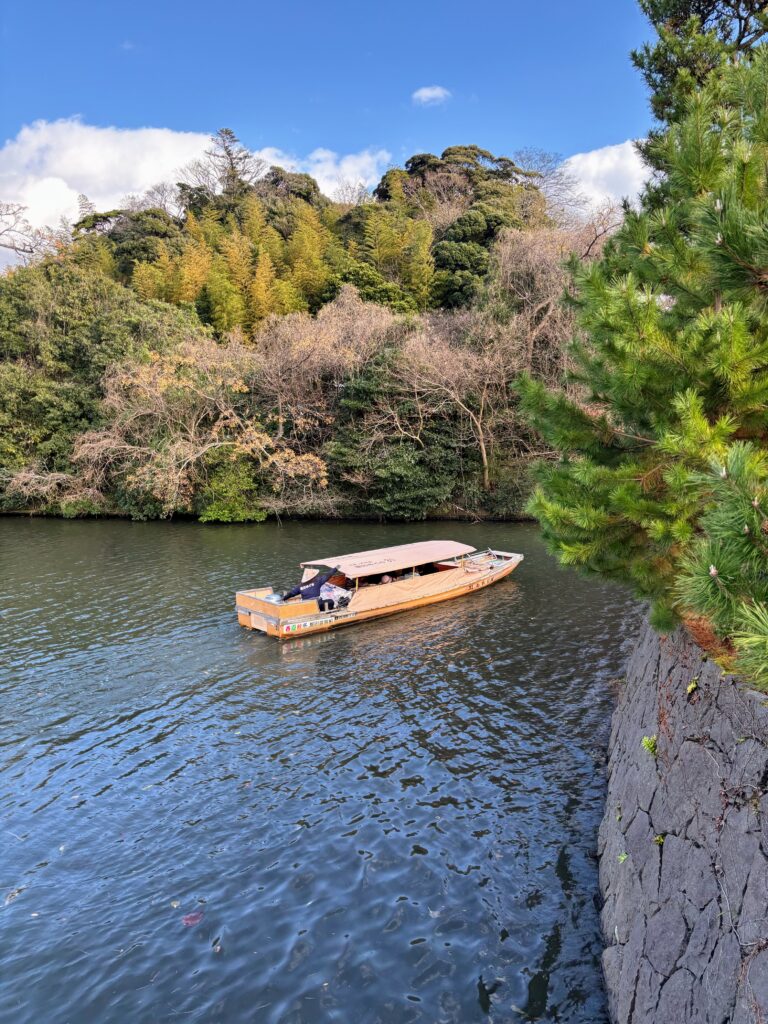 船に乗ってお堀を一周することもできる。屋根付きの小船で、冬場はことつも付いているようだった。