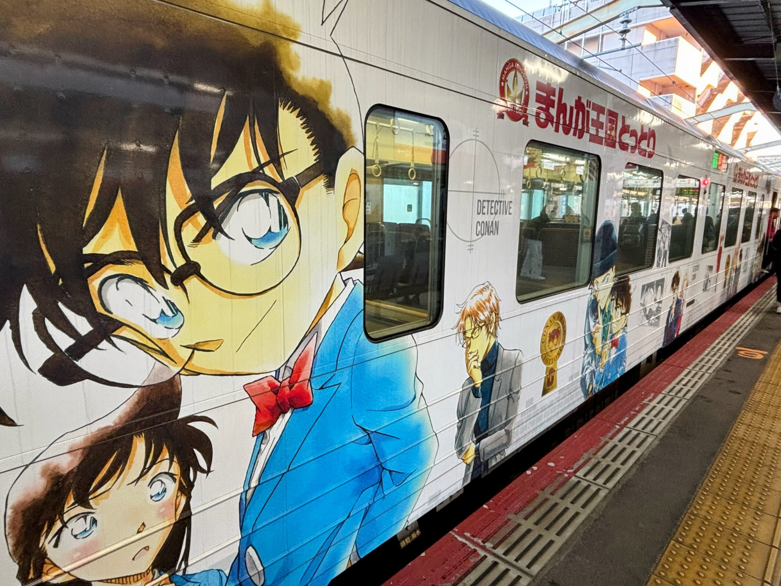 コナンくんの列車が入ってきた。『まんが王国とっとり』だったんだですね。