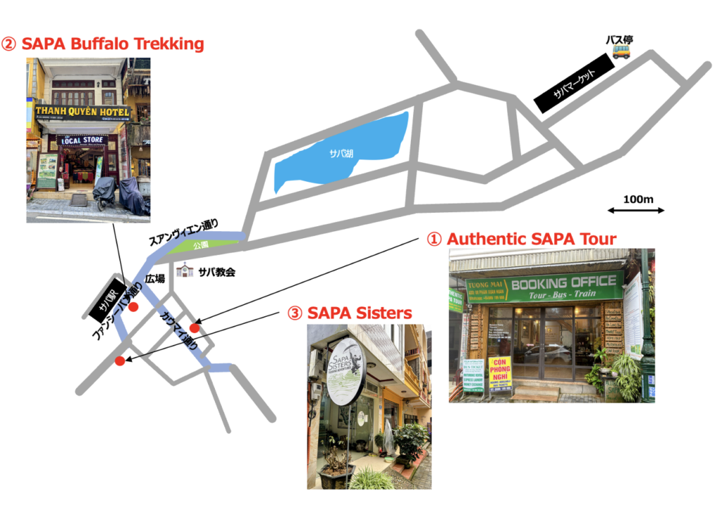 サパ現地での手配が可能です。街中(特にサパ駅周辺)には多くの旅行会社がありますが、以下の3社は対応も良くおすすめです。