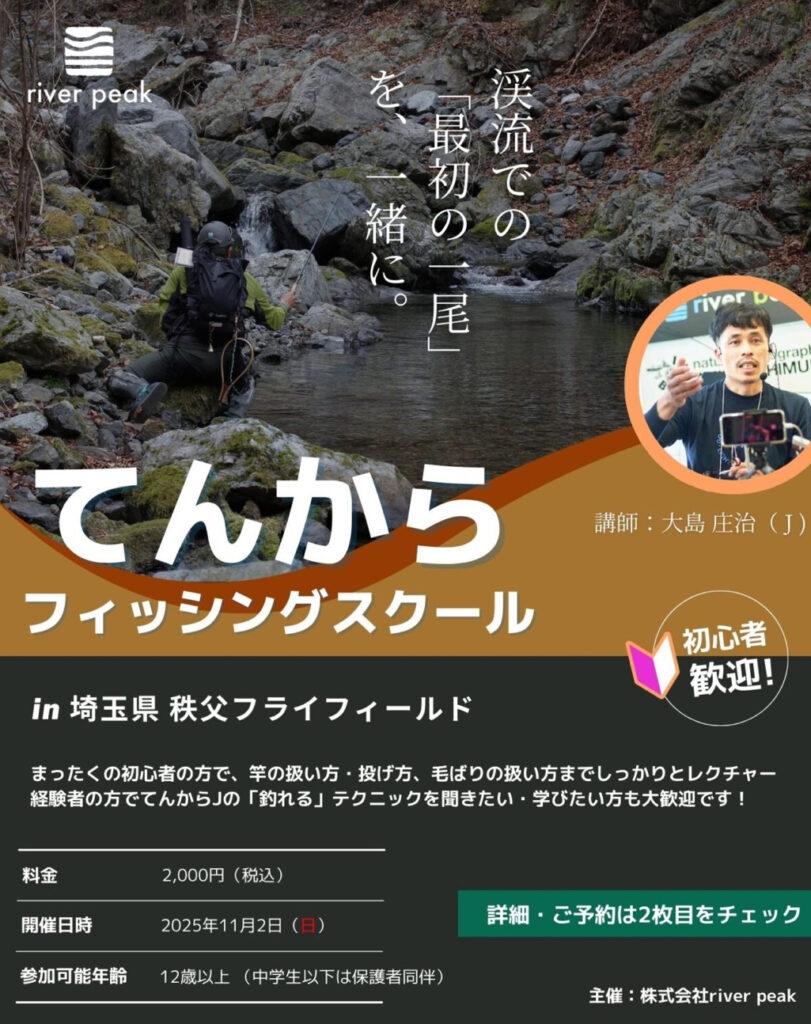 大島庄治さん(J氏)によるテンカラフィッシング教室が秩父フライフィールドで開催されることを知り、参加してきた。