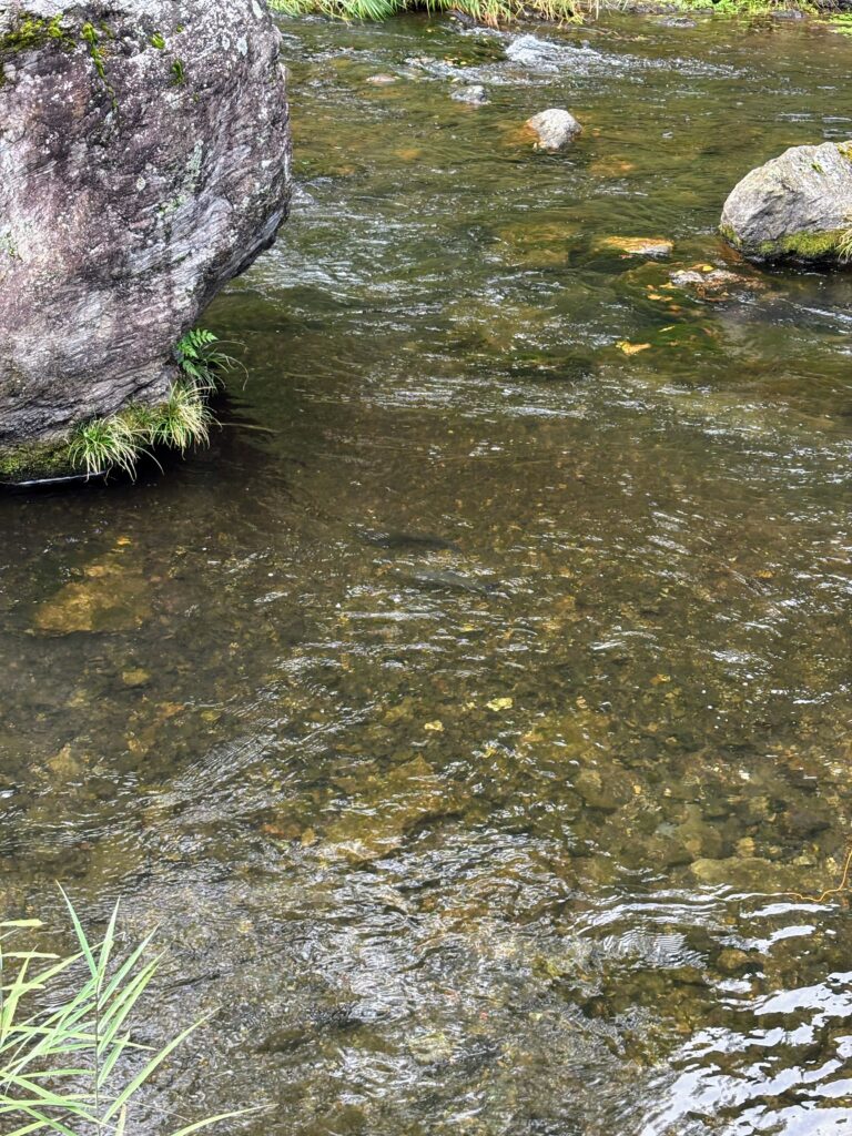 自分が釣ったニジマス。サイズは30cmくらいで、今まで釣った中で一番大きくて、引きが強かった。最初は何度かバラしてしまったが、いつか釣りたいと思っている尺イワナの練習になったはずである。