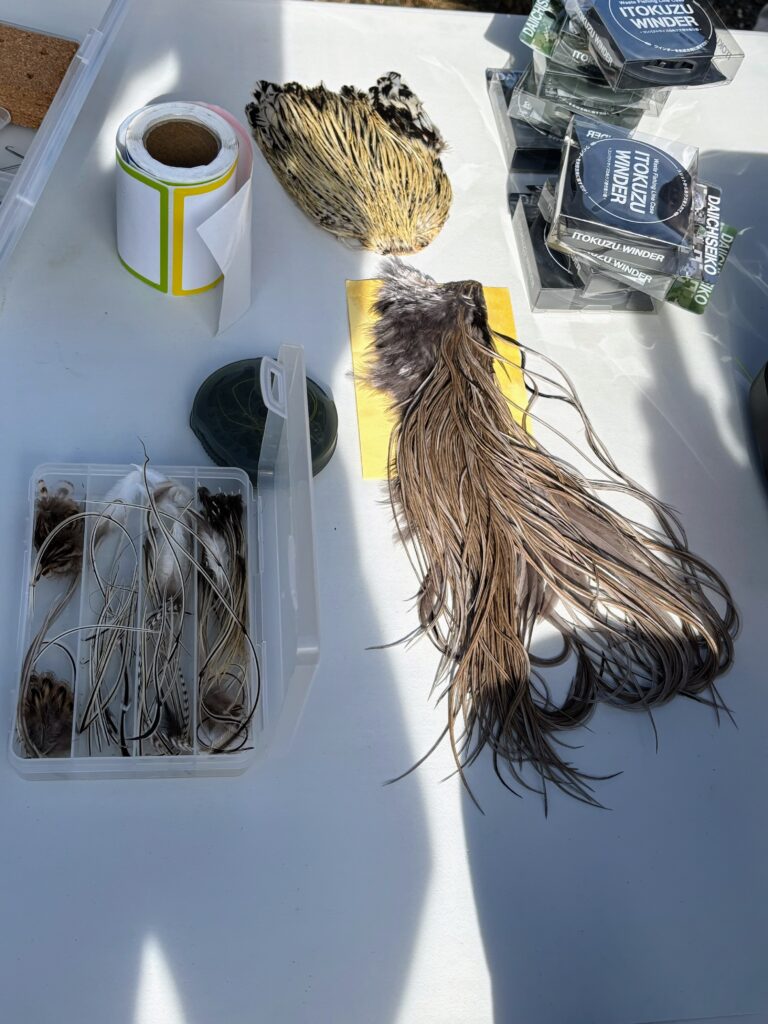 毛鉤の巻き方を実践してもらった。初めてみたので、理解はちゃんと理解できなかったかもしれないけれど、こんな道具と素材を使って毛鉤を作るんだと理解した。